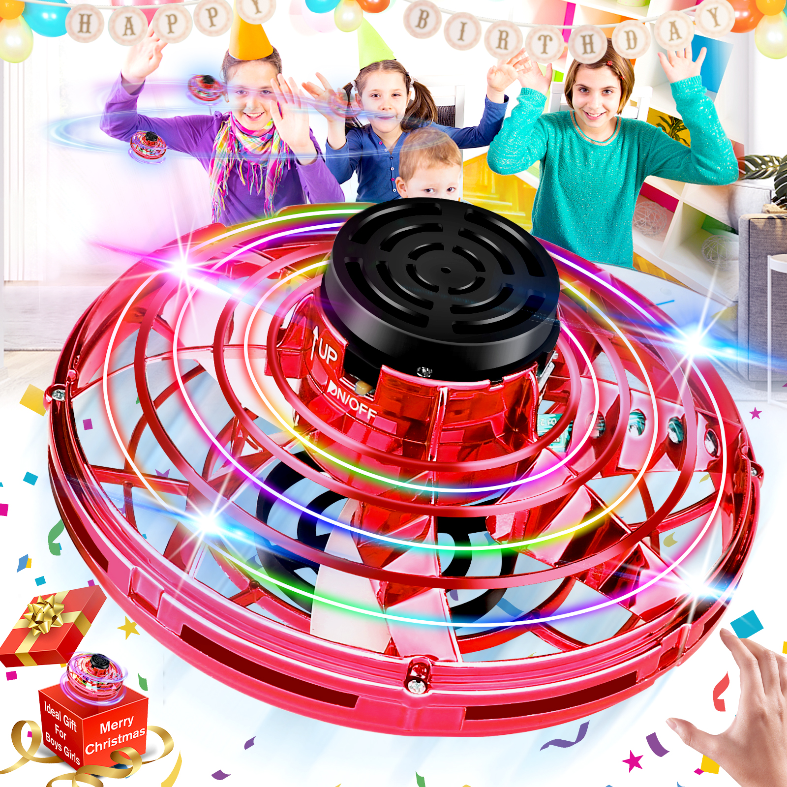 Vantexi Hand Operated Mini Drone for Kids – LED UFO Flying Orb Ball, Rechargeable Mini Fidget Spinner Toy for Indoor Outdoor,Christmas Birthday Party Gifts for Girls Boys(Red)